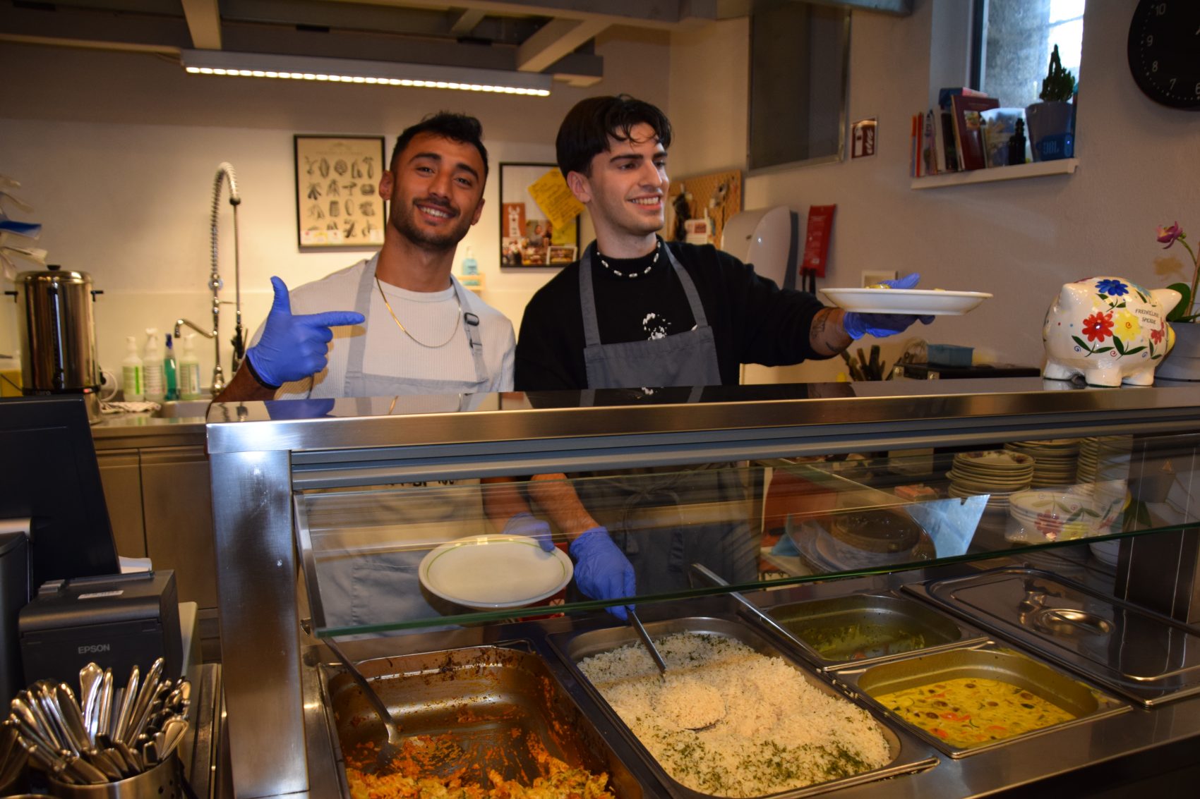 Es riecht köstlich gleich nach dem Eingang im Tageszentrum Haus Elisabeth. Eine Schlange Hungriger hat sich bereits angestellt und freut sich auf eine warme Mahlzeit. Zivildiener Markus und Freiwilliger Mehmet geben eine Portion nach der anderen aus, die mit Genuss verzehrt wird. „Hauptsächlich Armutsbetroffene und Wohnungslose nehmen die Angebote gerne an“, erklärt Einrichtungsleiterin Stefanie Brucker. Sie ist zuständig für alle Bereiche und legt Hand an, wann und wo es nötig ist. Das Haus Elisabeth der Caritas in der Elisabeth-Vorstadt bietet in vier Bereichen Hilfe und Unterstützung an: Sozialberatung, Tageszentrum, Veranstaltungen auf der E-Bühne sowie die Winternotschlafstelle für Frauen.